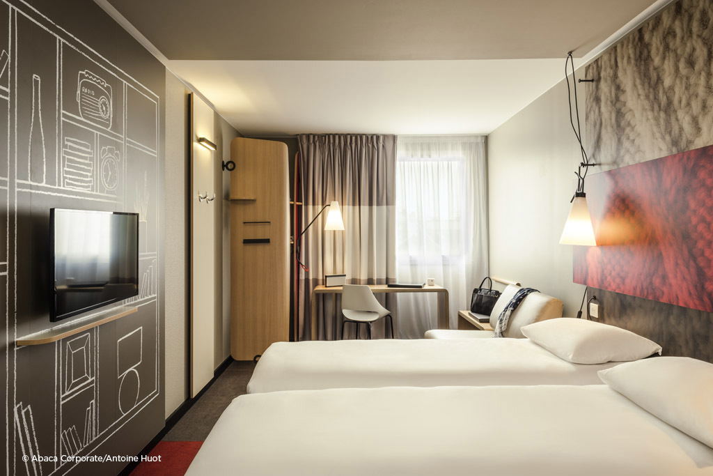 Your good night's sleep is our priority. The ibis room is totally dedicated to your comfort. Our blackout curtains have a clear message for the sun: “Do not disturb”. Above all, to make sure you get a happy night’s sleep 365 nights of the year, we have created the ultimate in comfortable bedding for you, from scratch. Our bed will transform your nights.
